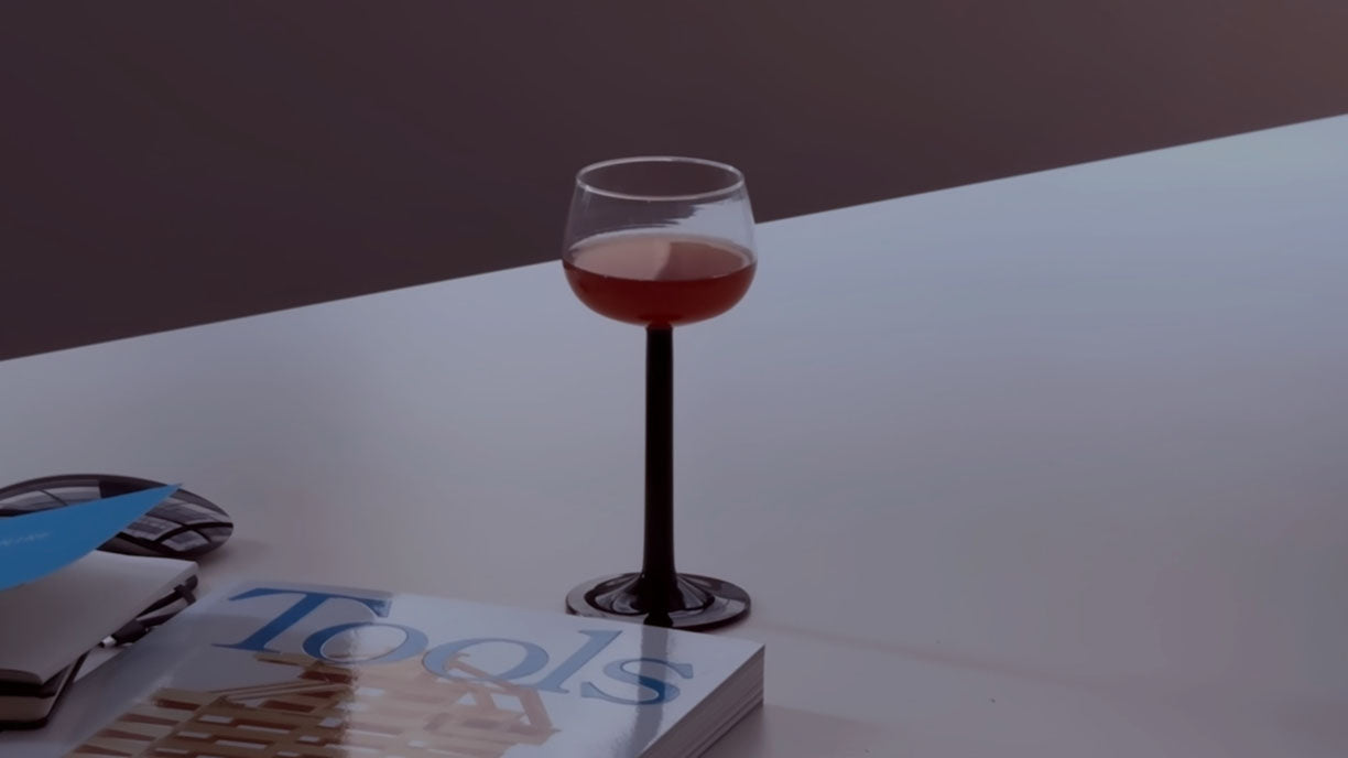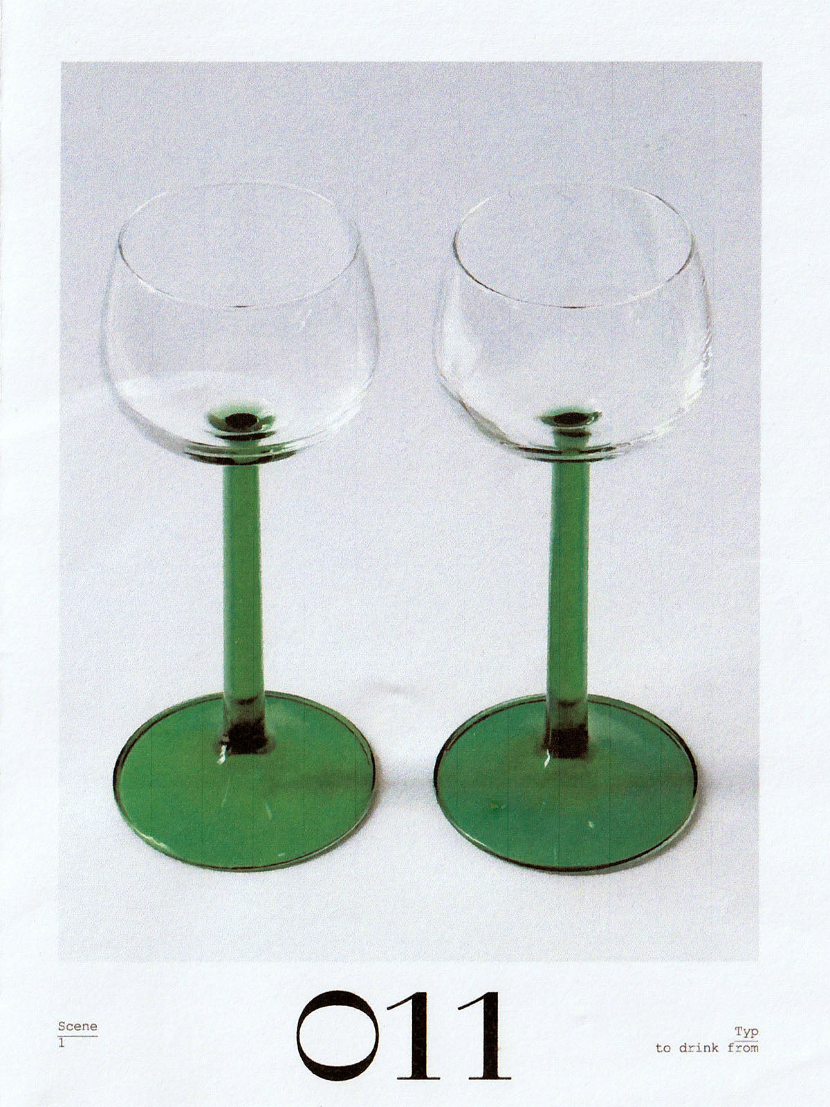 French wine glasses with a see-through green stem.