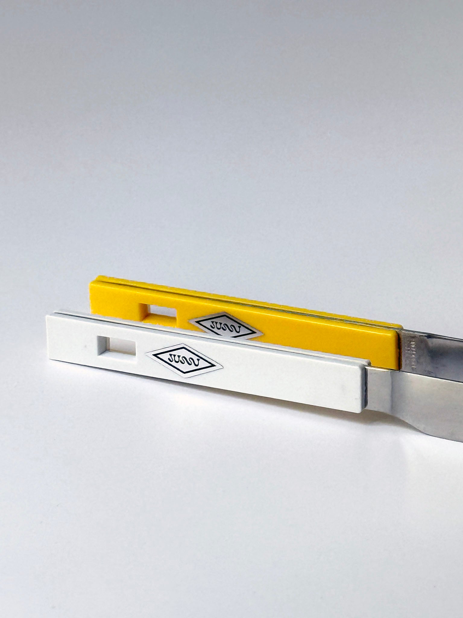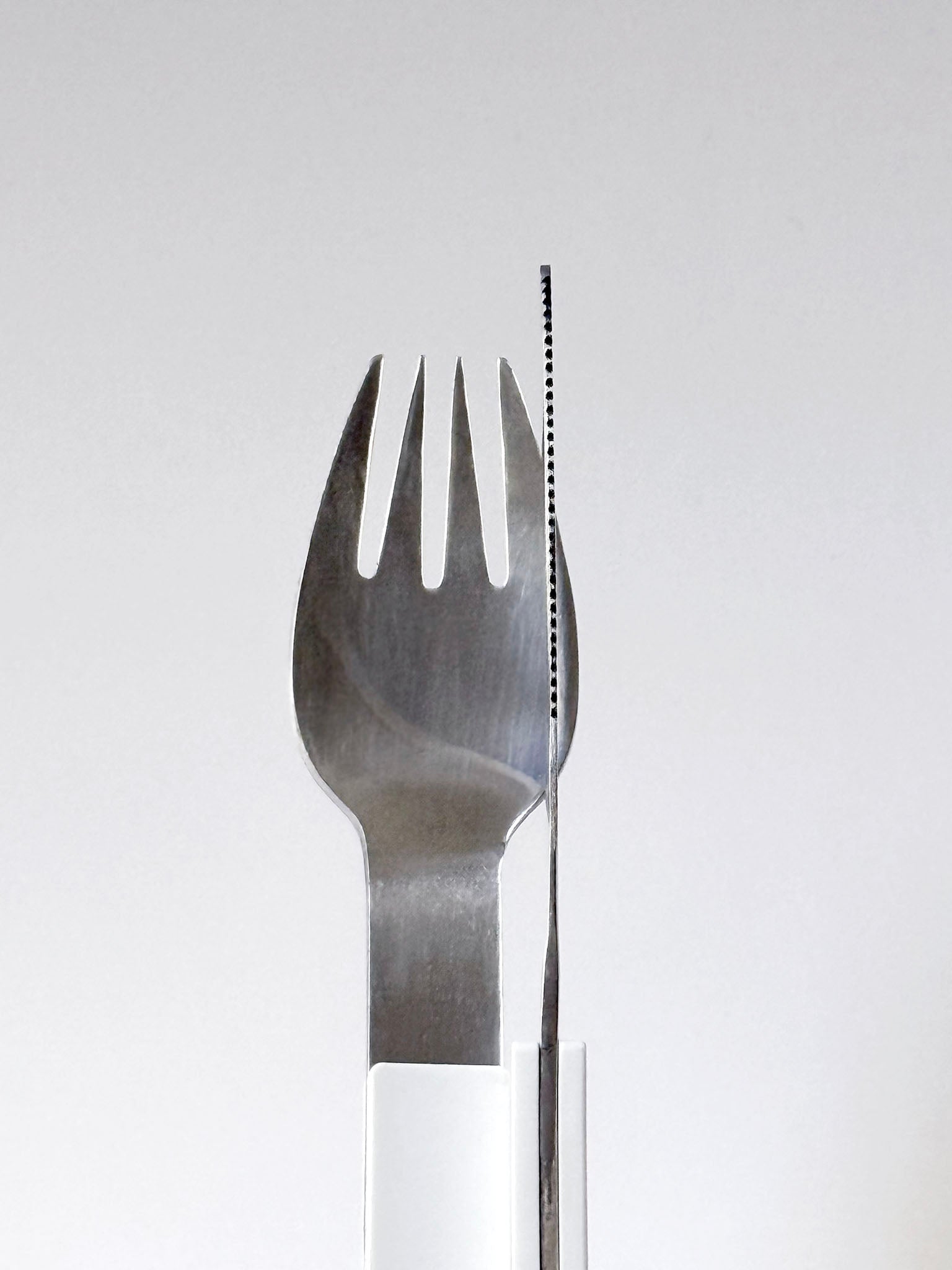 Made of stainless steel with plastic handles. Also available in white.